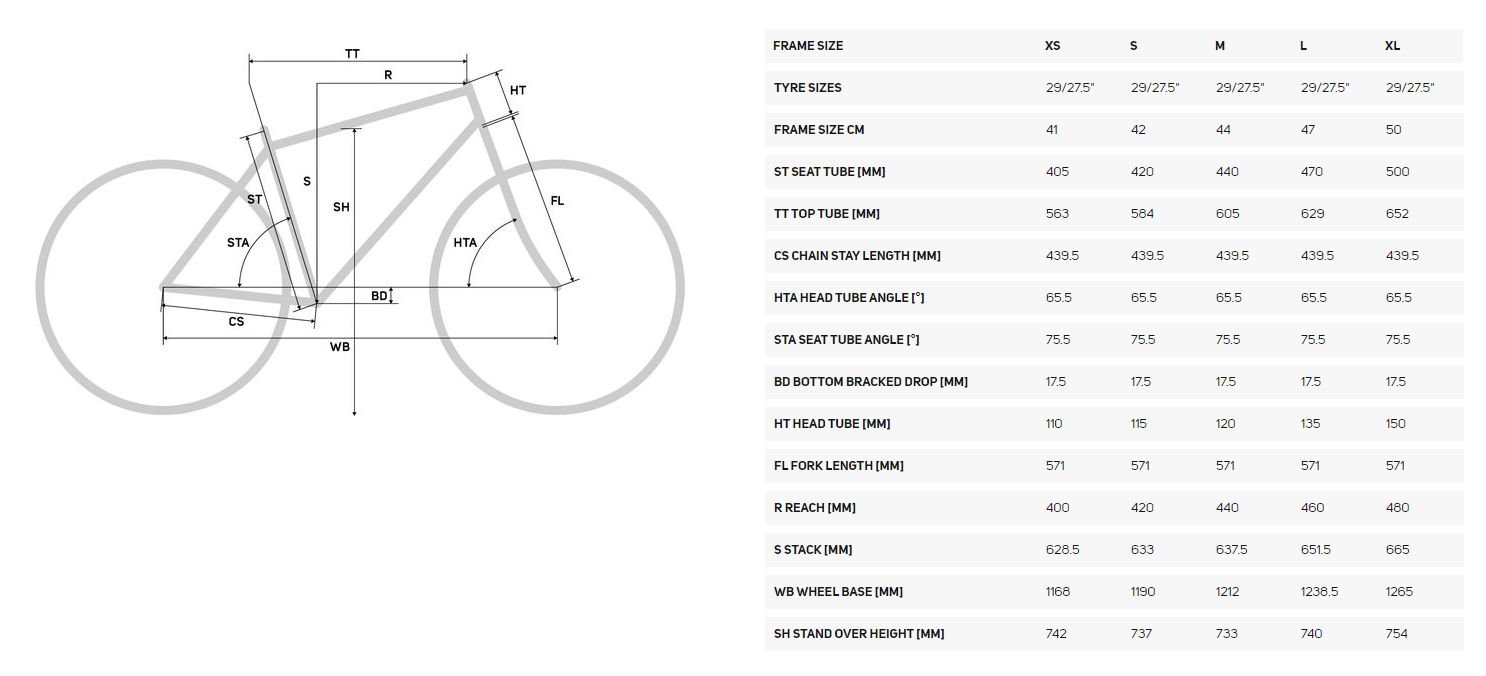 BOOST -TEKNOLOGI - De fleste modeller tilbyder Boost -teknologi for og bag. Den lavere akselstandard på 110 mm (foran) og 148 mm (bag) giver mulighed for en bredere talevinkel, hvilket resulterer i et stivere og stærkere hjul, der er yderst fordelagtigt for disse cykler i betragtning af de påvirkninger, de udholder. BIG.TRAIL 200 har 100 mm gaffelafstand.